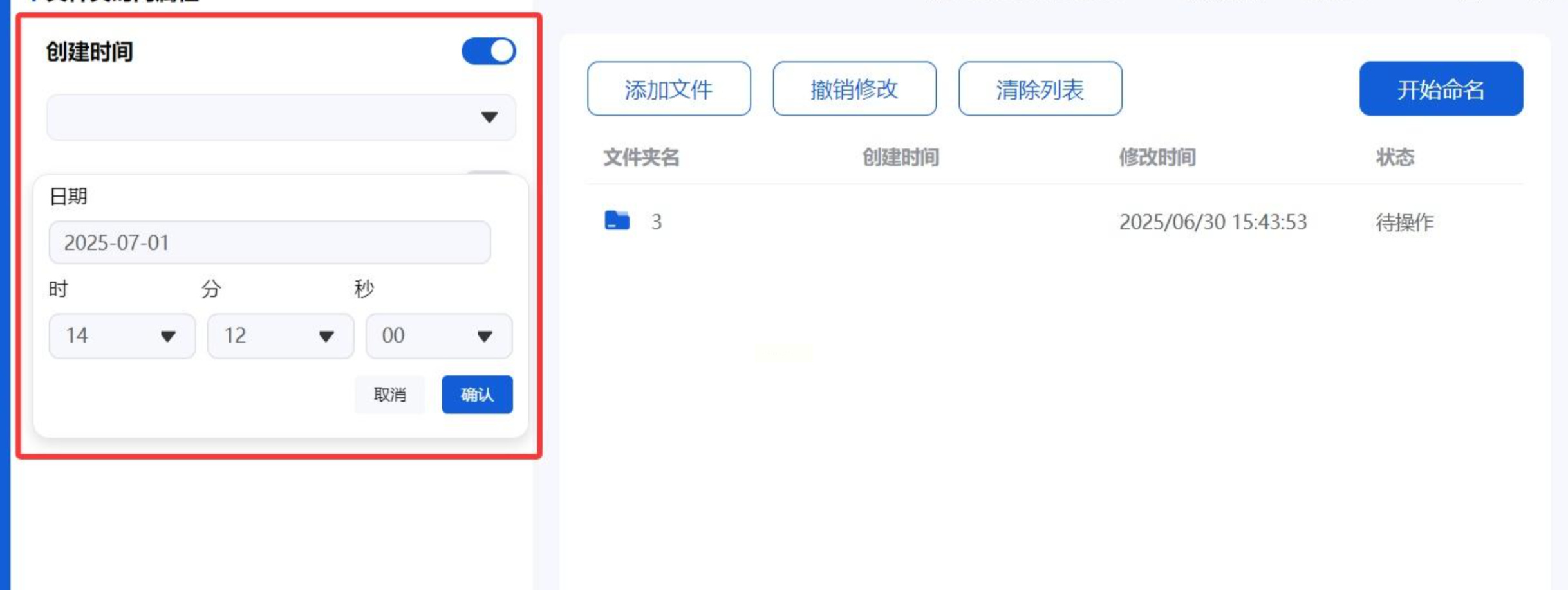 添加文件夹后,在软件界面的右侧找到“修改时间”选项,并勾选它。旁边通常会有一个时间设置按钮,点击后会弹出一个日历和时间选择框。