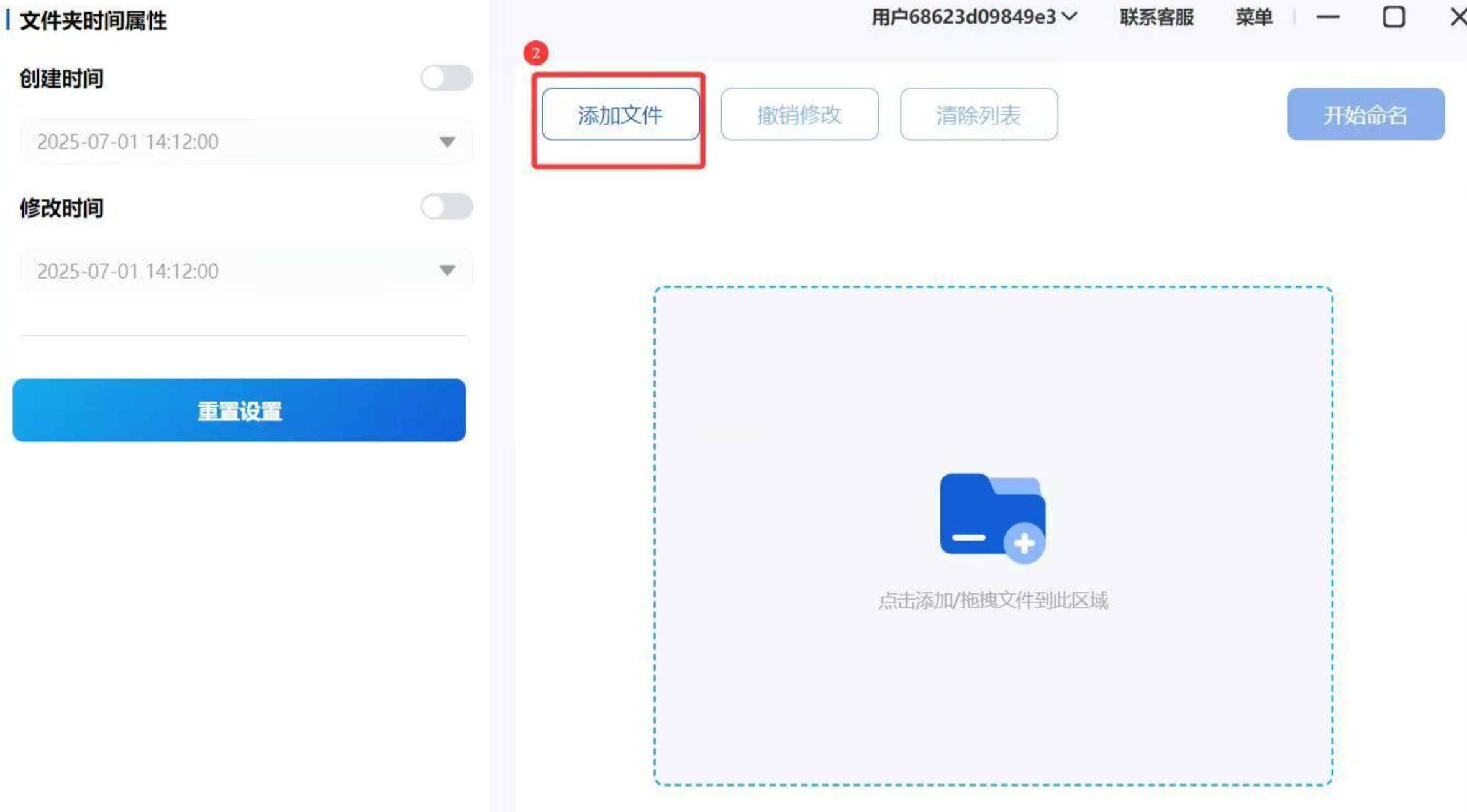 启动软件,在左侧功能菜单中找到“文件夹时间属性”选项并点击。进入功能页面后,点击“添加文件”或“添加文件夹”按钮,选择需要修改时间的文件夹。