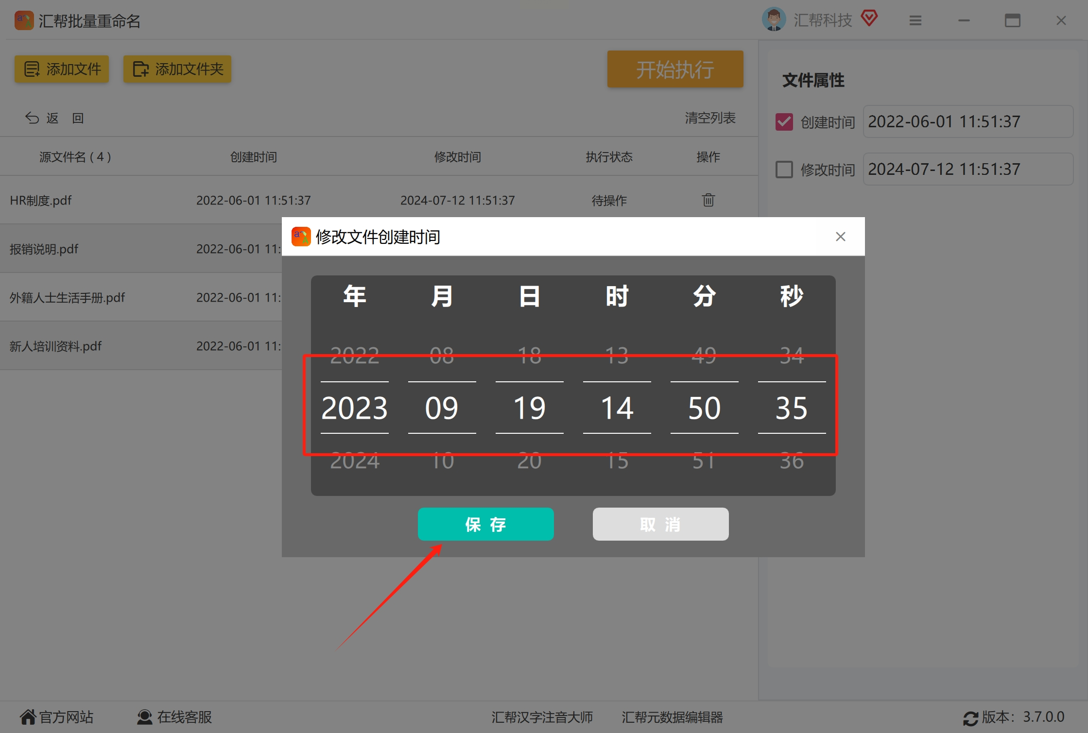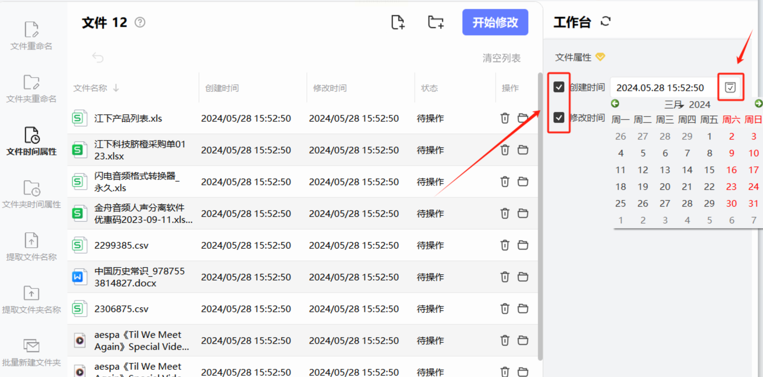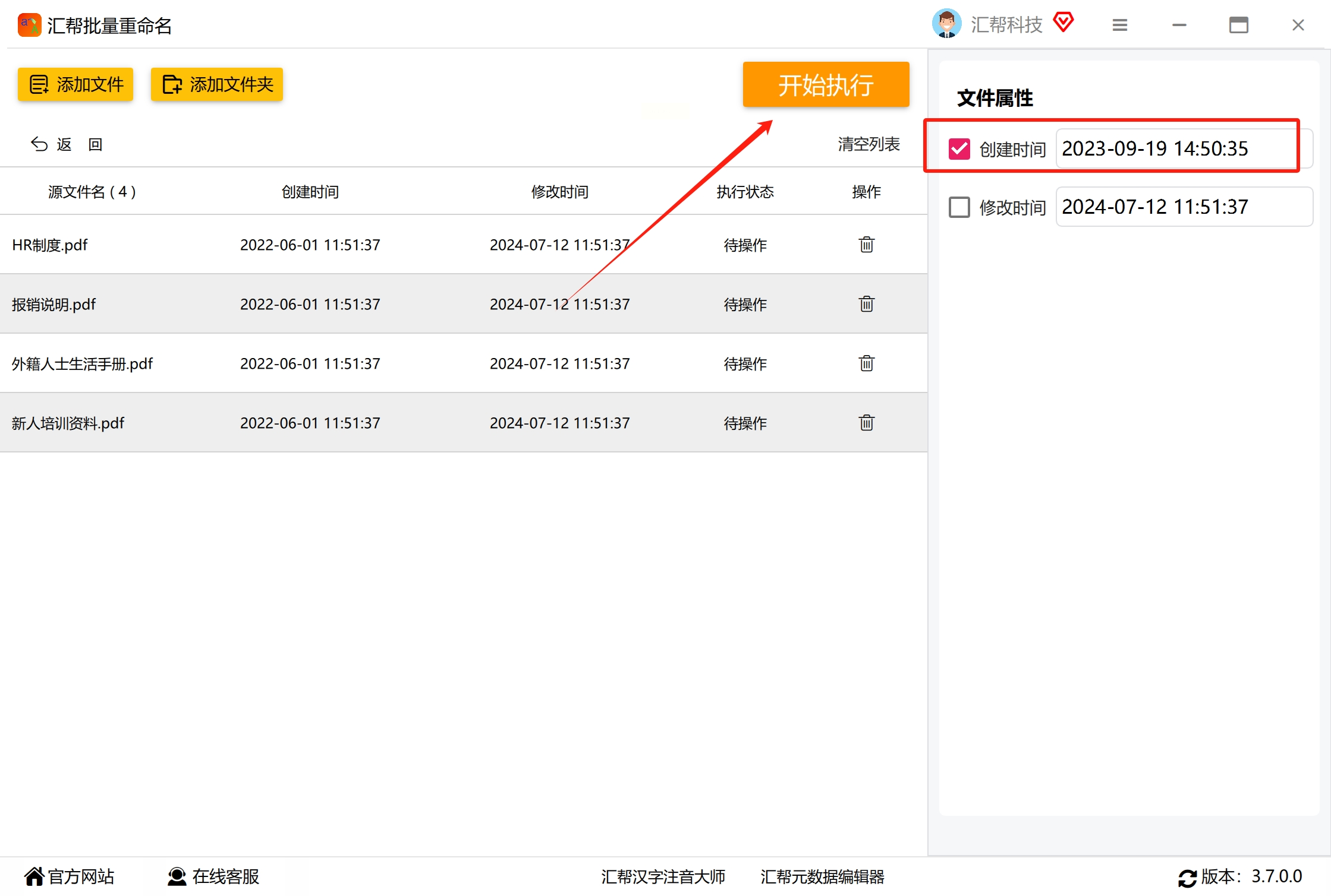 5. 确认修改:如果需要同时修改“修改时间”,勾选对应的选项,然后点击“开始执行”按钮。