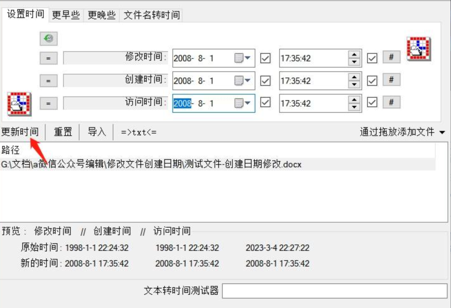 5. 更新时间:点击“更新时间”按钮,软件会立即修改文件属性。