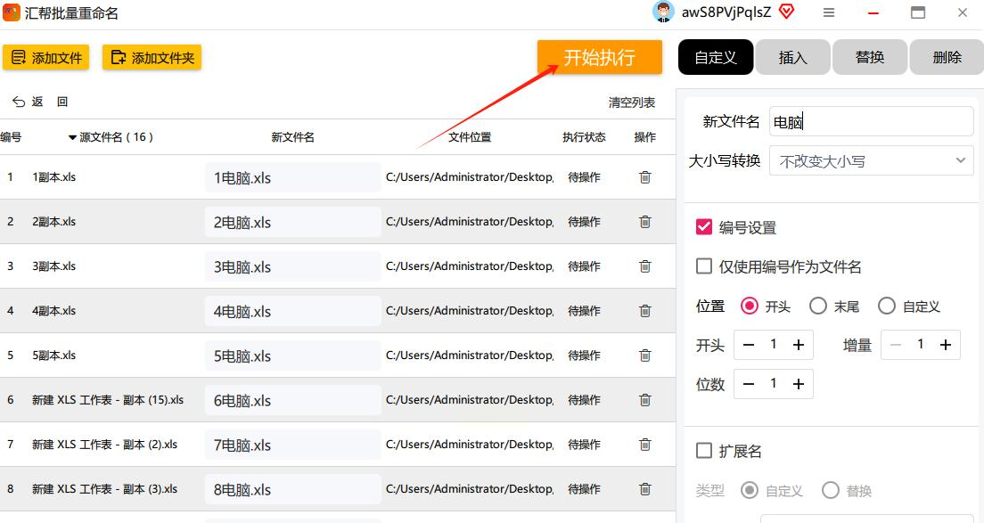 6. 在点击执行前,务必查看软件的“预览”区域,这里会显示应用新规则后的文件名效果。确认无误后,点击“开始重命名”或“执行”按钮。
