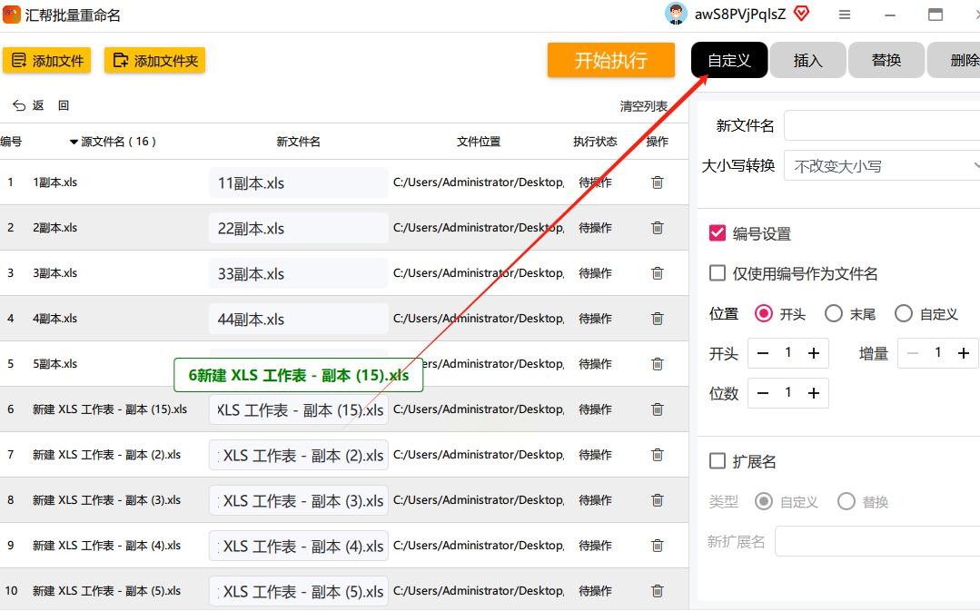 3. 设置新的命名规则。在软件的命名规则设置区域(通常在右侧或下方),进行配置。首先,在“自定义名称”或类似输入框中,填入文件名的固定部分,例如“2024年10月销售数据”。