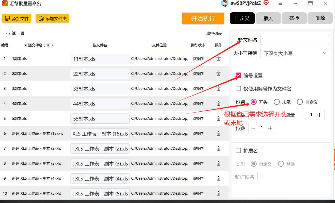 4. 接着,设置序号。找到“插入序号”或类似选项。你可以选择序号的位置,是放在文件名开头(前缀)还是结尾(后缀)。然后设置序号的起始值和位数,例如希望生成“01, 02, 03…”这样的序号,就将起始值设为1,位数设为2。
