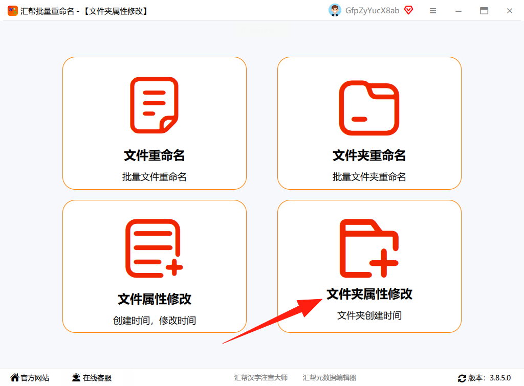 1. 打开工具后,在主界面找到“文件夹属性修改”选项