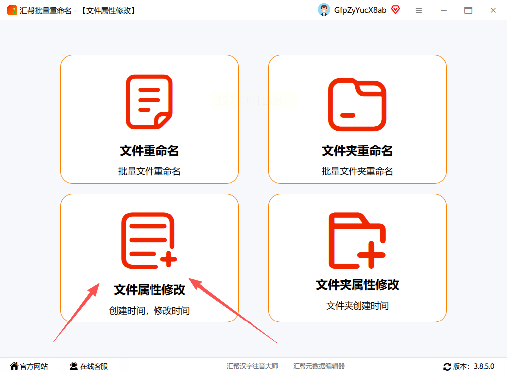 1. 打开软件,在左侧"文件管理"文件属性修改"功能