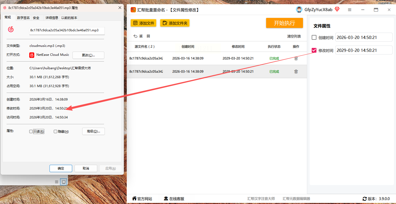 通过5种工具实测,「属性修改大师」和「MP3Tag」 组合使用效率最高:前者适合批量改系统时间,后者专注元数据调整。新手建议先从方法一(汇帮)开始,熟练后用方法二兼顾元数据,轻松搞定mp3修改日期。