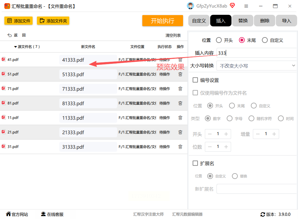5. 在右侧编辑的同时,左侧会实时显示文件名称的预览效果,方便你随时检查是否有误。