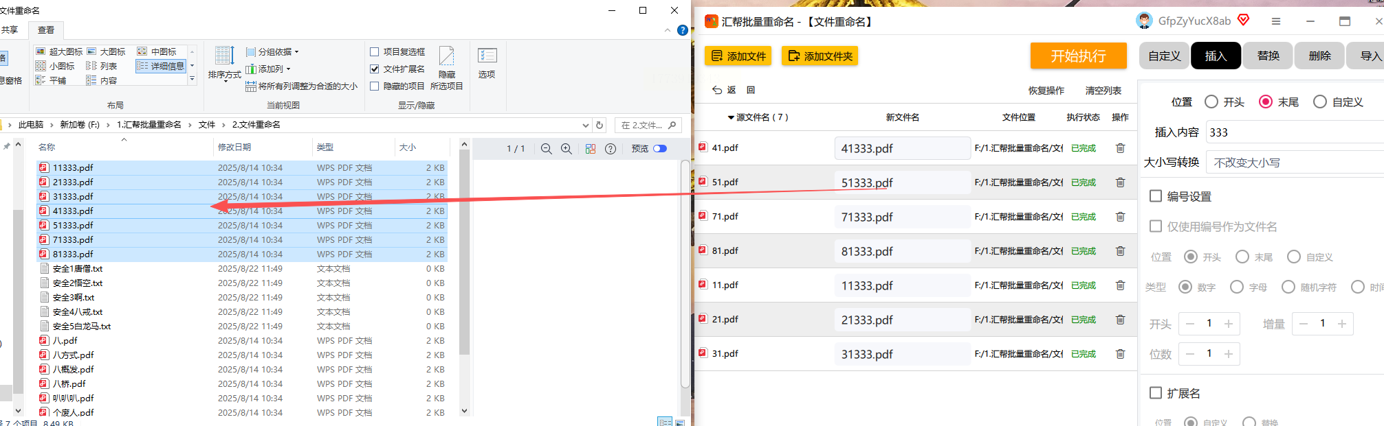 7. 确认所有设置无误后,点击“开始执行”按钮,软件将自动完成批量重命名操作。