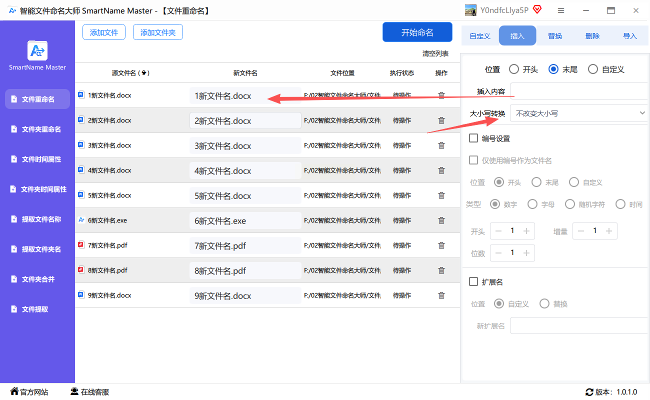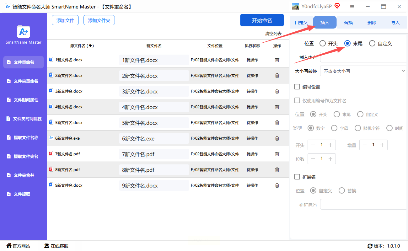 智能文件命名大师是一款操作简单的文件处理工具,适合新手用来批量给文件名后面加文字: