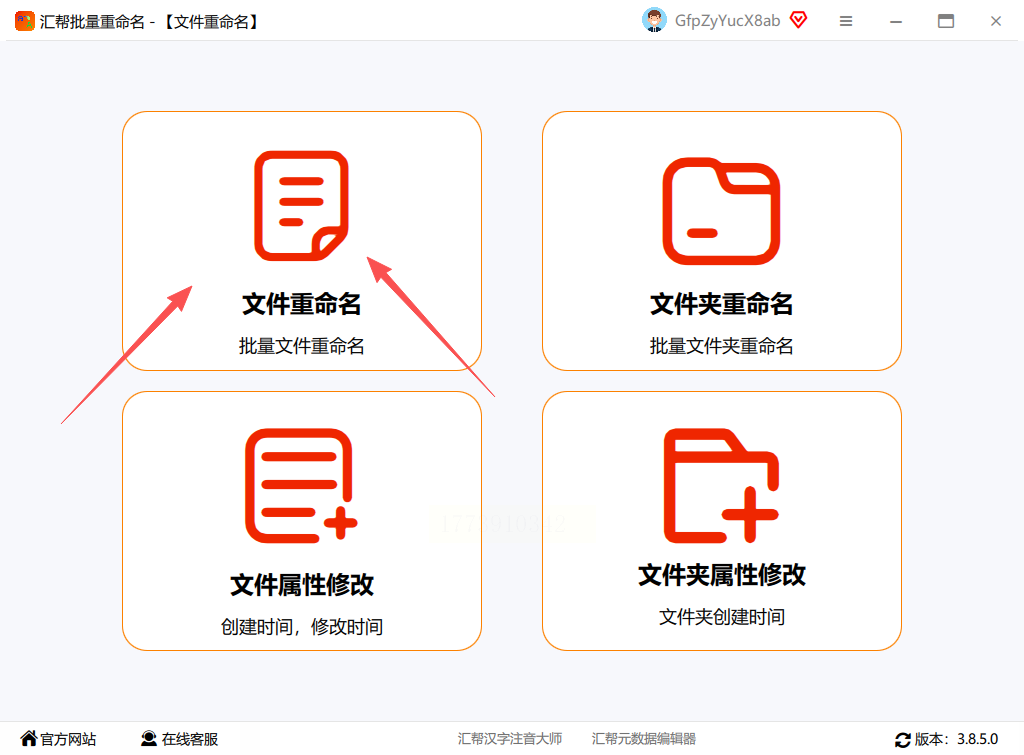 1. 打开汇帮批量重命名软件,在主界面选择“文件重命名”功能。