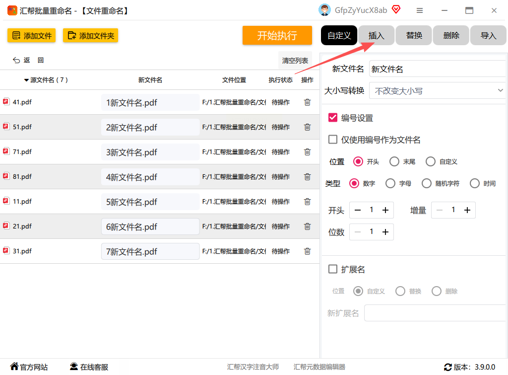 6. 确认设置后,点击“开始执行”,软件将自动完成批量重命名。