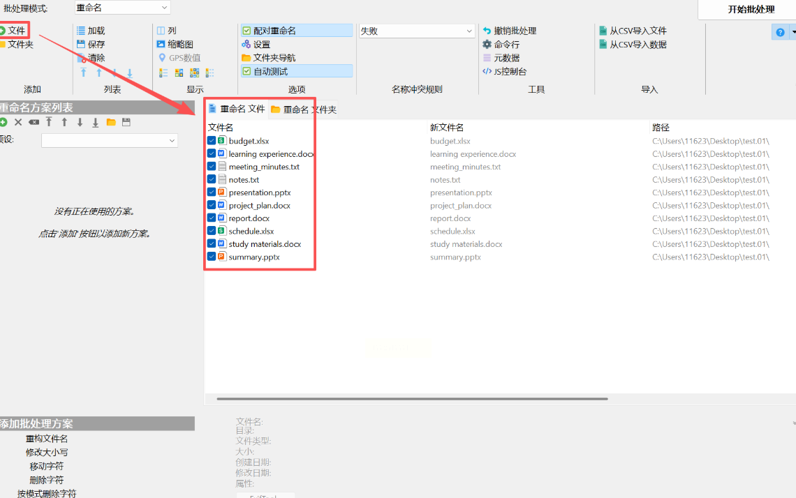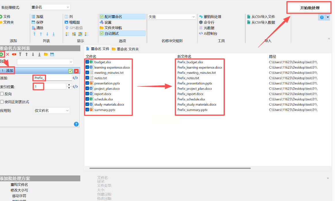 4. 右侧预览区会实时显示修改后的文件名,比如原文件是"数据.xlsx",添加前缀后会变成"季度总结_数据.xlsx"。