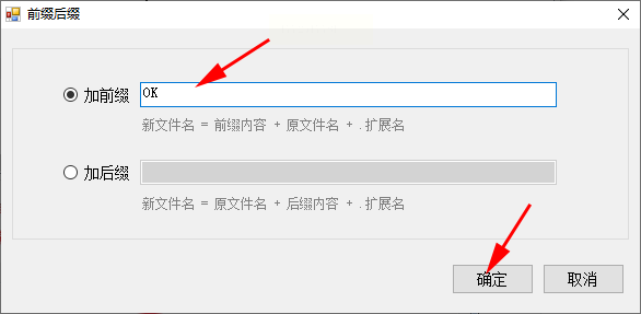 3. 在输入框里输入前缀内容(比如"重要文件_"),下方预览区会显示效果。