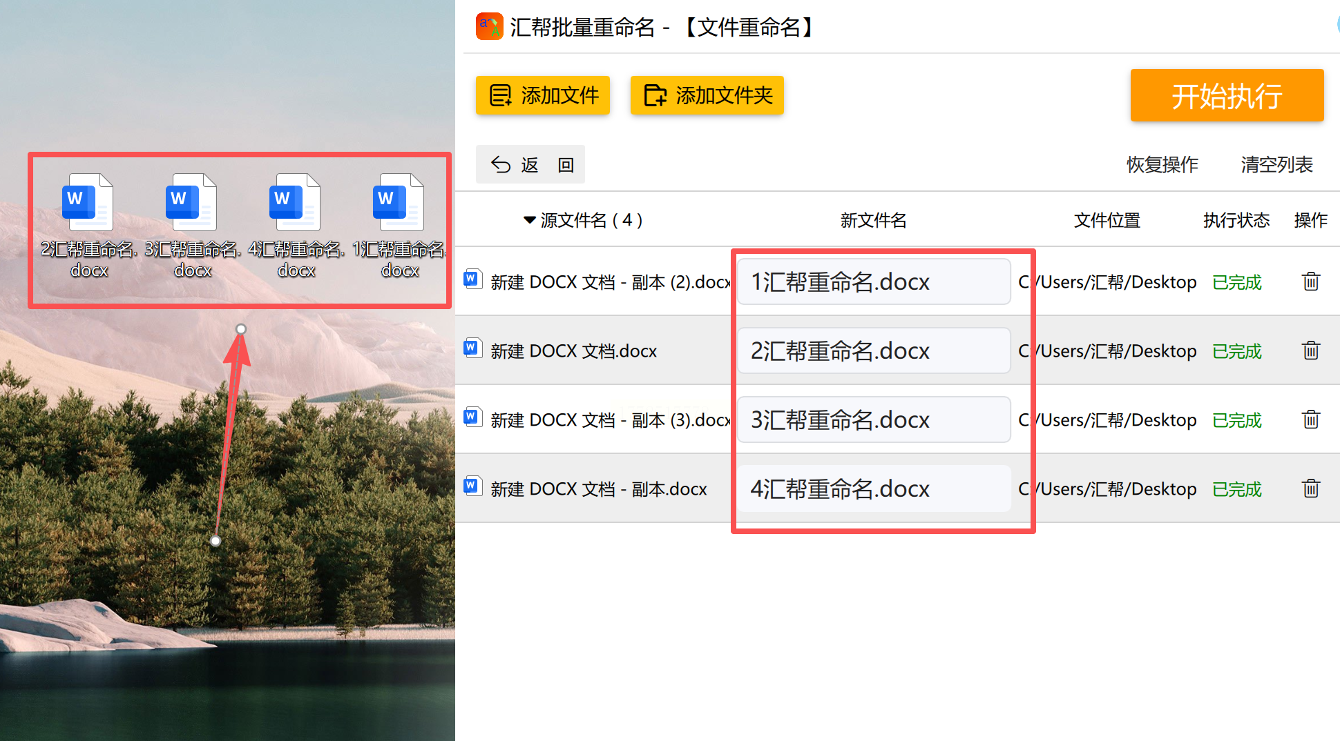5. 最后点击"执行修改",软件会在几秒钟内完成所有文件的重命名。