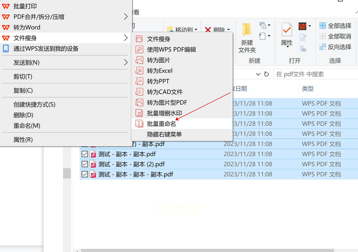 在文件资源管理器中,定位到需要重命名的PDF文件所在文件夹。可以通过按住Ctrl键逐个单击,或按住Shift键连续选择多个文件,也可以使用Ctrl+A全选所有文件。选中后,在任意一个被选中的文件上单击鼠标右键,在弹出的上下文菜单中找到并点击“批量重命名”选项。