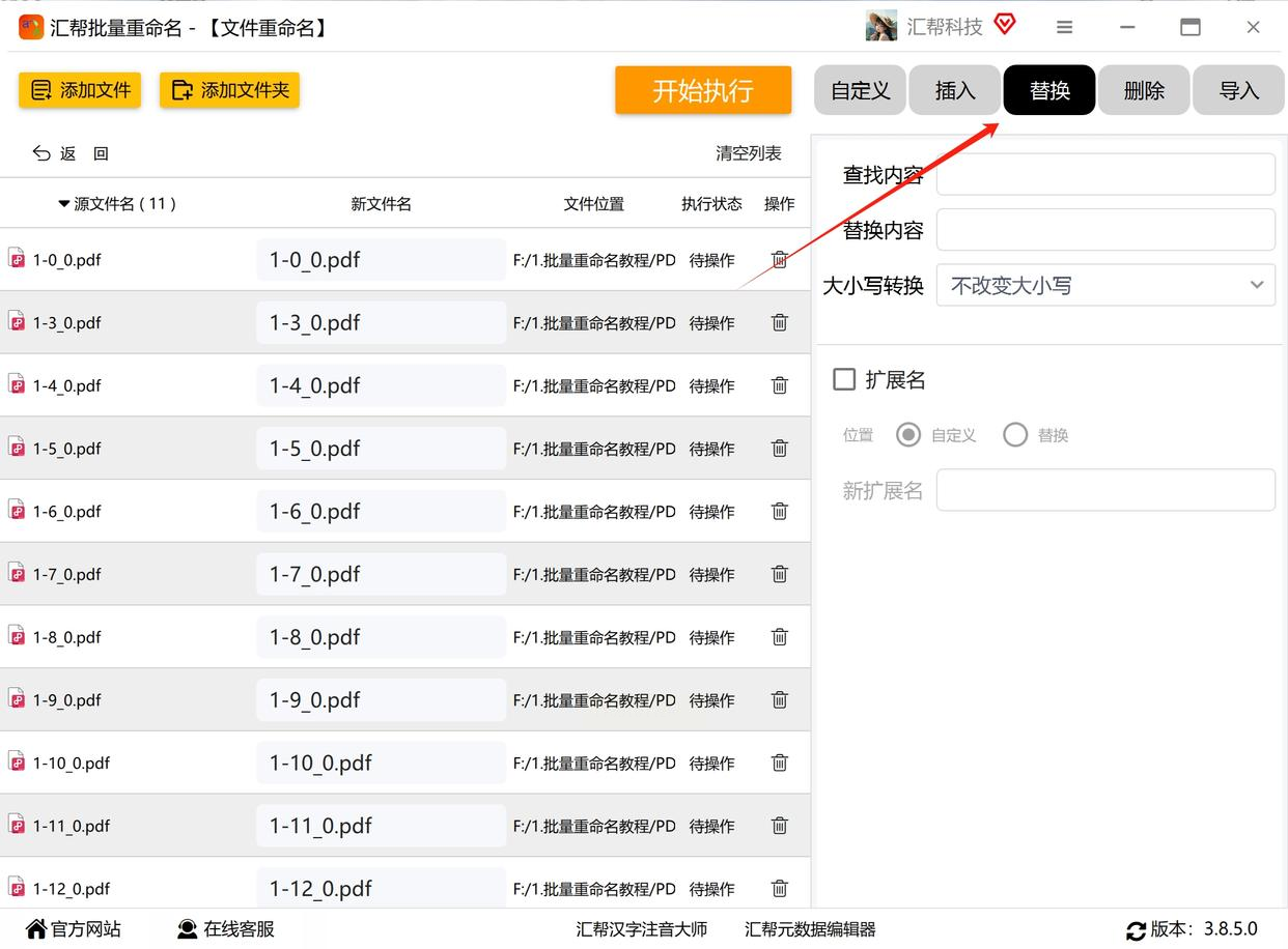 5. 预览+执行改名:左边列表里会实时显示改好的文件名,你眯着眼瞅两眼,确认没错就点“开始执行”!等进度条走完,去原来的文件夹里看,所有PDF文件名都乖乖变好了~