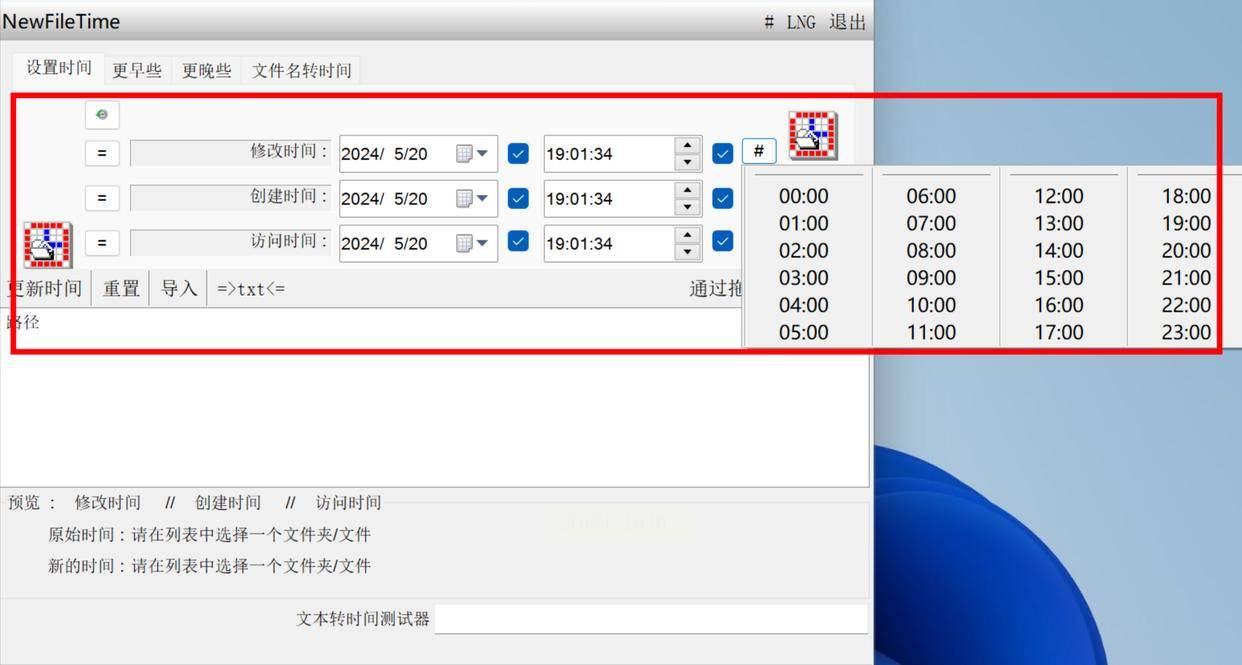 - 时间类型选择:勾选“创建时间”“修改时间”或“访问时间”中的任意组合(默认全选);