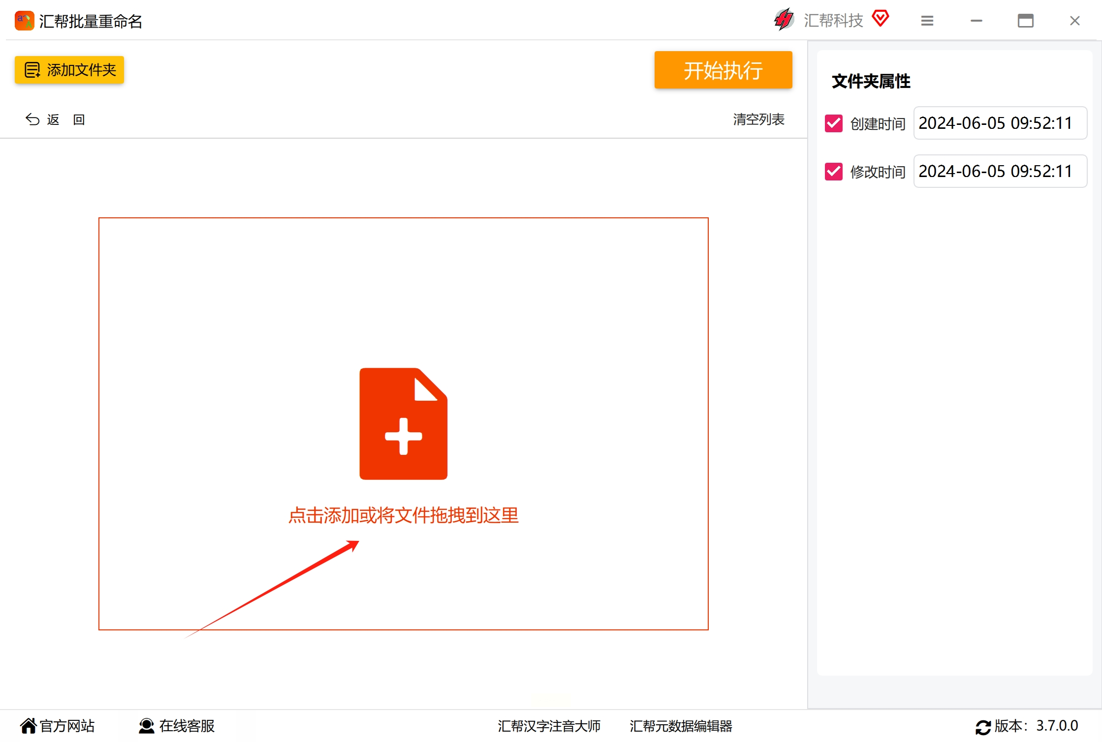 下载并安装“汇帮批量重命名工具,打开软件后选择“文件夹属性”模块。
