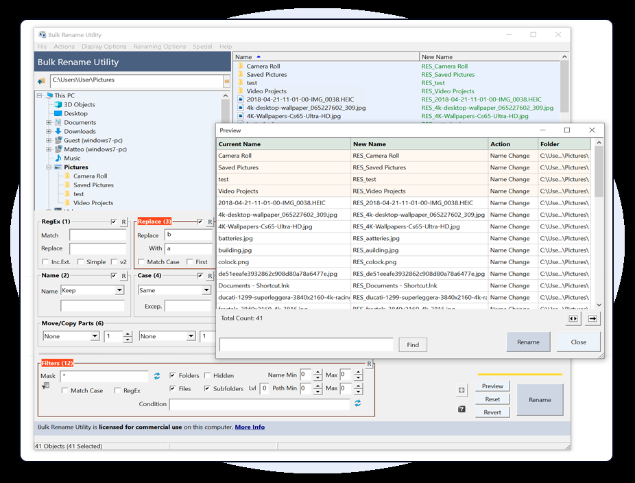 Bulk Rename Utility是一款功能强大的免费桌面软件,专为需要精细控制重命名规则的用户设计。它支持多种高级选项,如正则表达式、大小写转换和条件筛选,尤其适合处理复杂文件结构,例如为数千个文档添加动态后缀。该软件界面虽略显专业,但通过分栏布局和实时预览,能帮助用户快速掌握核心操作。