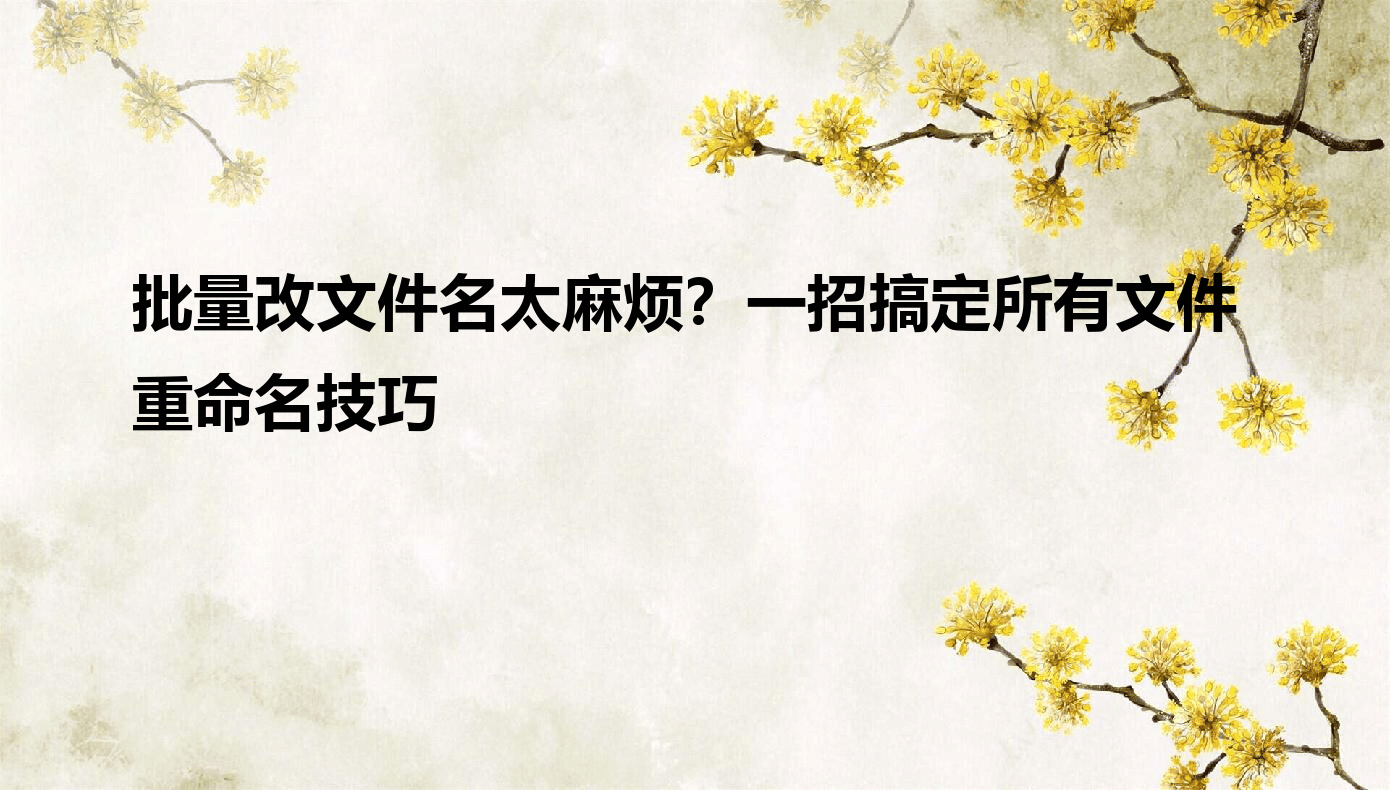 你是不是也遇到过这种糟心事:电脑里存着几百张照片,每张都是"IMG_1234.jpg"、"PIC_5678.png"这种乱码;公司发的会议资料堆成山,文件名长得像天书,找个东西要翻半天?这时候要是一个个改文件名,简直能把人逼疯!不过别慌,今天就给大家分享几个超实用的批量重命名方法,从软件工具到系统自带功能,总有一款适合你,看完直接上手操作,让文件管理变得超轻松~