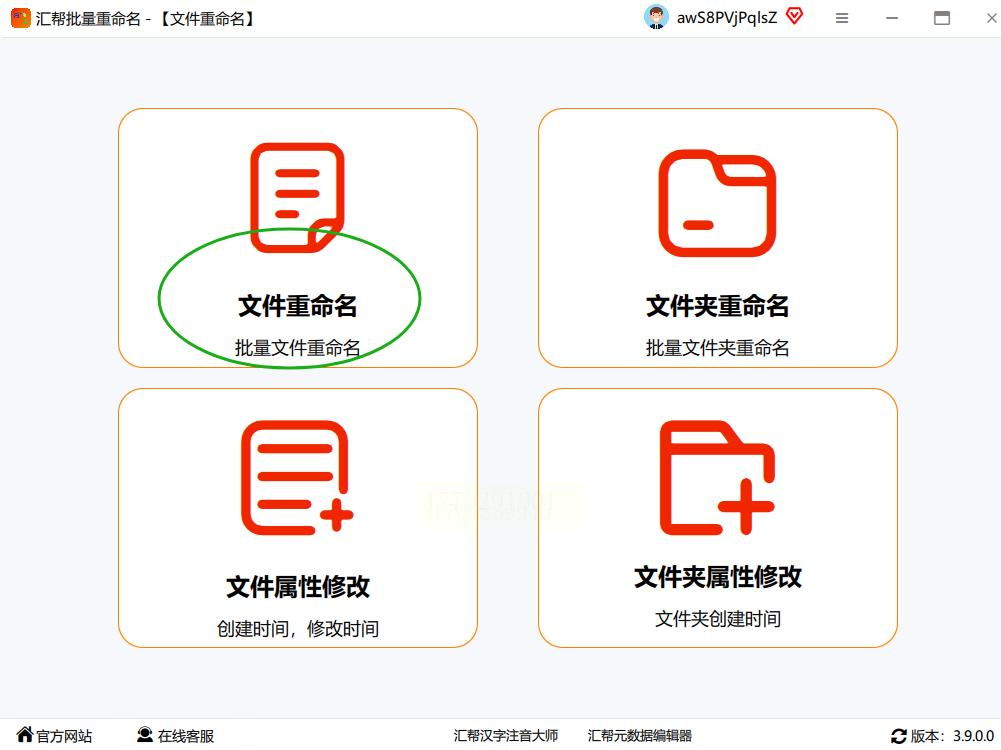 双击图标打开,首次使用会弹出功能引导界面,点击“文件重命名”进入主界面。