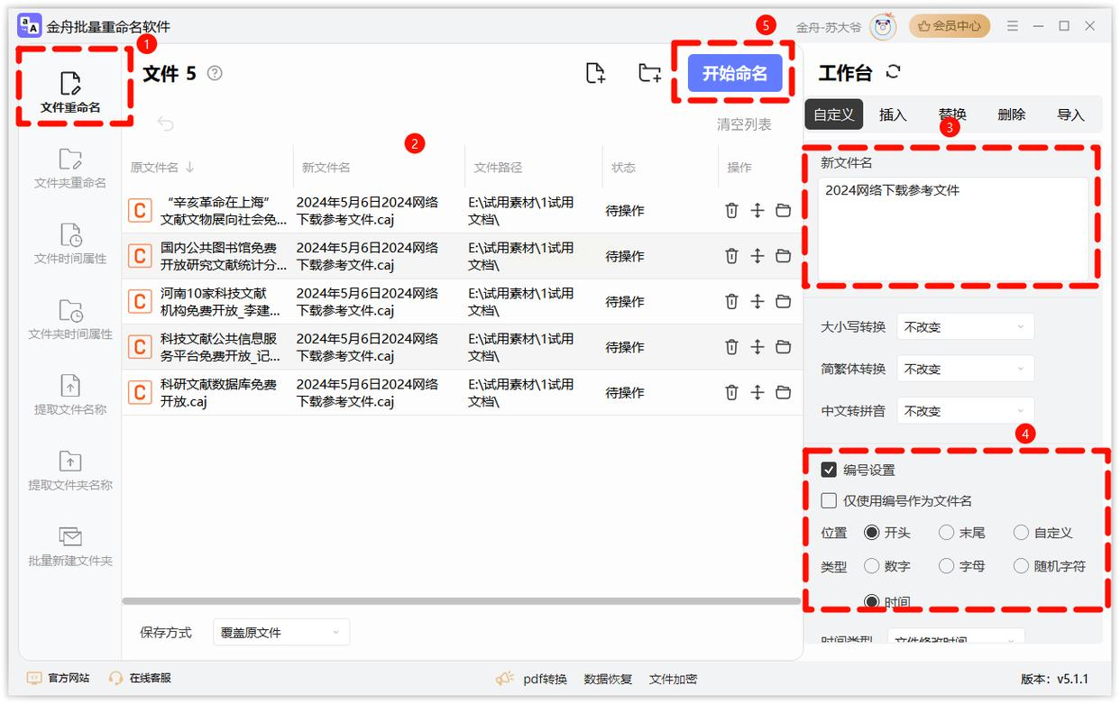 ② 设置命名规则:在界面中输入新名称格式,比如“文档_YYYYMMDD_”,并添加编号规则。