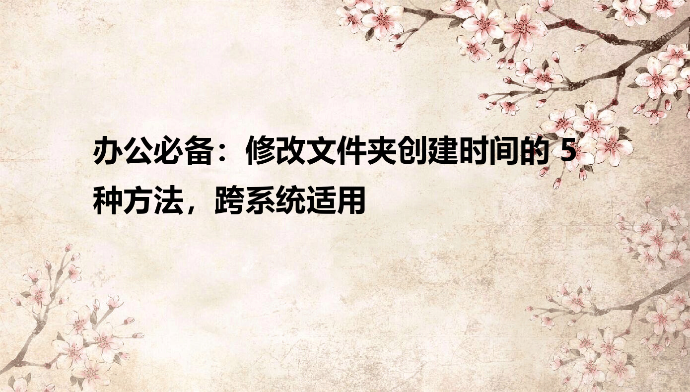 在文件管理工作中,文件夹的创建时间常常需要统一或修正。无论是项目归档需要调整时间线,还是系统迁移后时间戳混乱,都可能要求我们修改文件夹的创建时间。本文将详细介绍5种简单高效的方法,从基础工具到专业软件,覆盖Windows和macOS系统,让你无需编程也能轻松搞定文件夹时间修改。