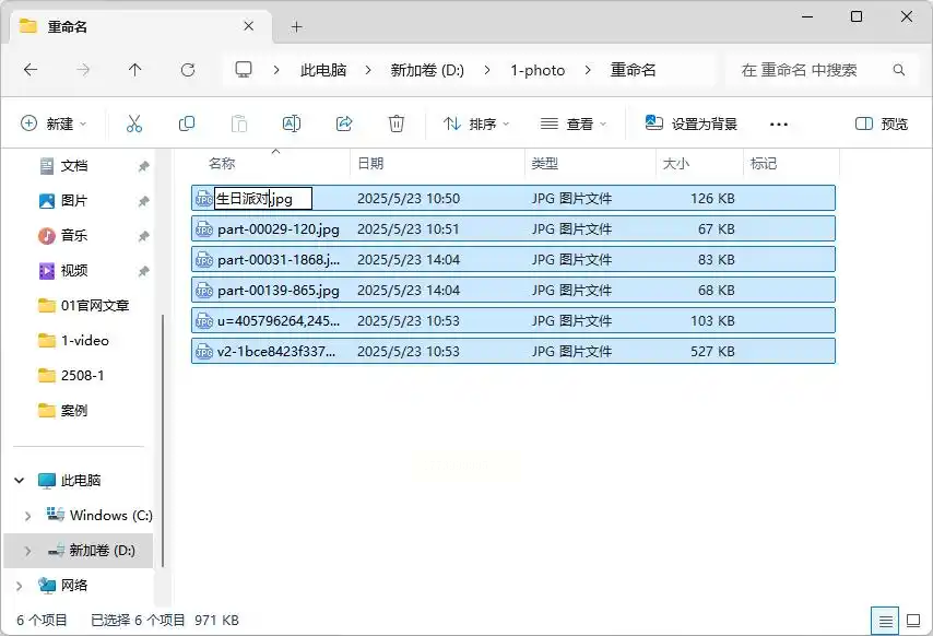 - 按F2再次重命名,直接修改基础名称