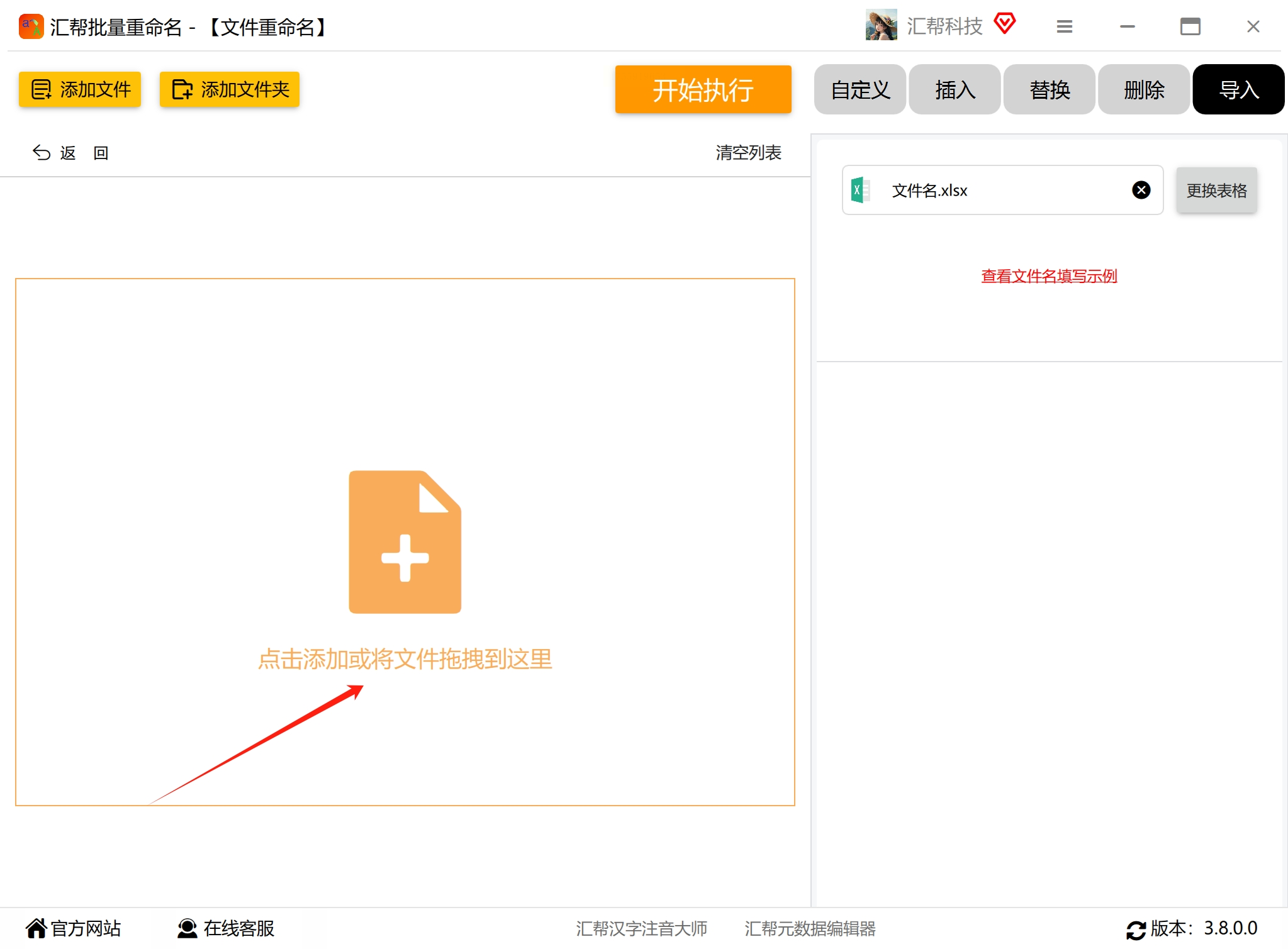 点击“导入Excel表格”按钮,在弹出的窗口中选择你包含文件名的Excel表格。 确保你的Excel表格第一列包含你要设置的新文件名。