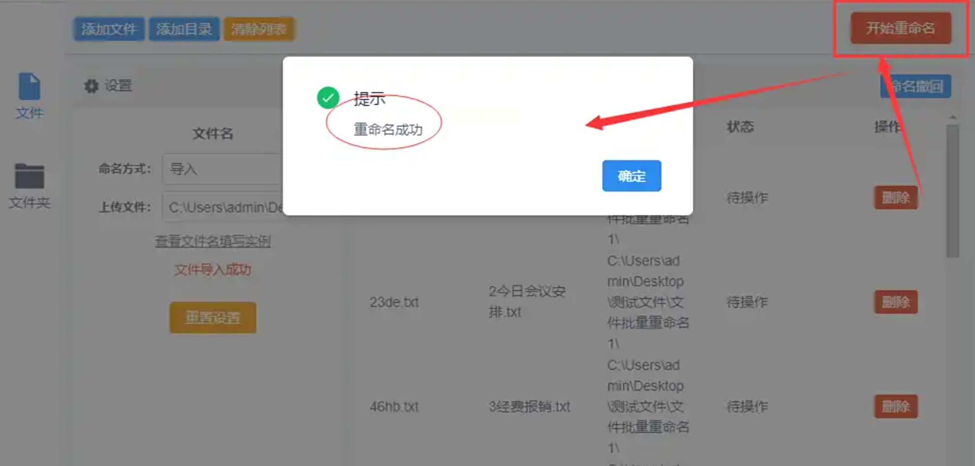 软件运行完成后,会弹出“重命名成功”的提示,表明文件名修改完成了。 你可以去查看文件,验证修改结果。