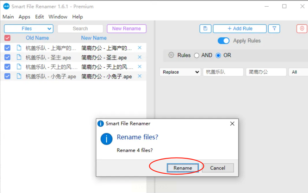 5. 执行重命名。预览满意后,点击大大的“Rename”按钮即可