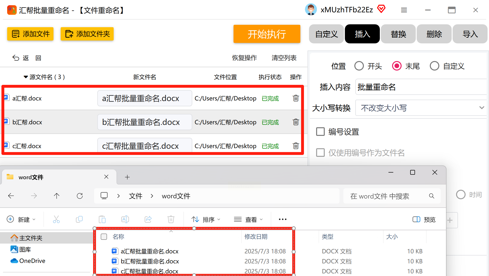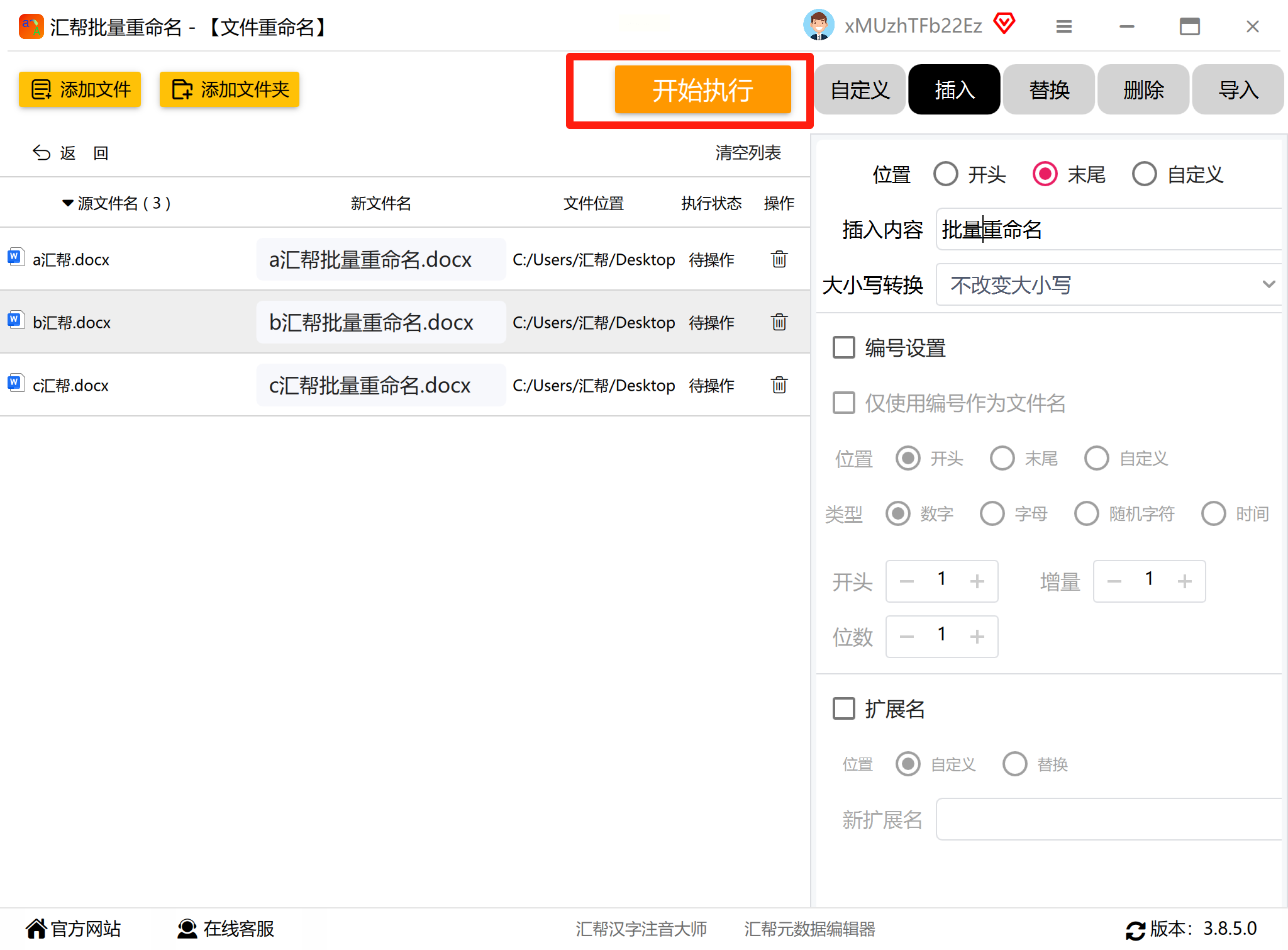 确认设置无误后,点击“开始执行”按钮。软件会迅速处理所有文件,其优化算法确保即使面对数百个文件也能在短时间内完成。