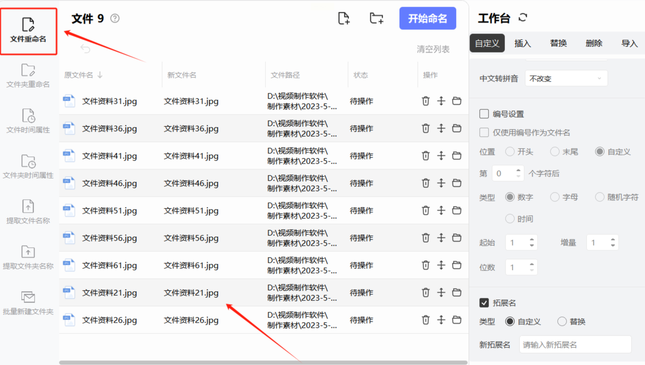 用户将文件导入后,可直接在右侧功能面板勾选“拓展名”修改,并输入新的后缀内容。软件界面会同步更新“新文件名”的预览,确认后一键即可完成所有文件的更改。这类工具的优势在于将文件重命名的各种场景(如替换、插入、序列化)模块化,方便用户快速理解和操作。