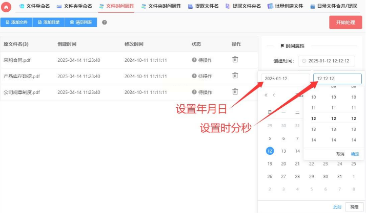 步骤4:点击"开始处理"按钮,软件会逐个修改文件创建时间,完成后会显示每个文件的修改结果,方便核对。