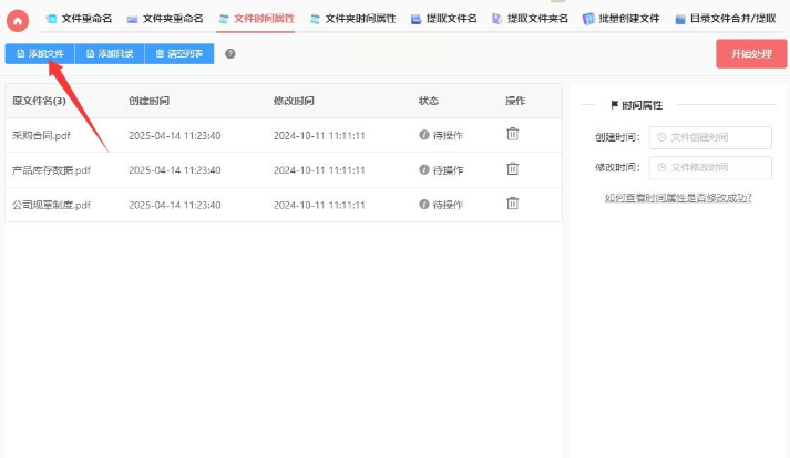 步骤1:打开软件后,在首页功能区选择"文件时间属性"模块,进入时间修改界面。