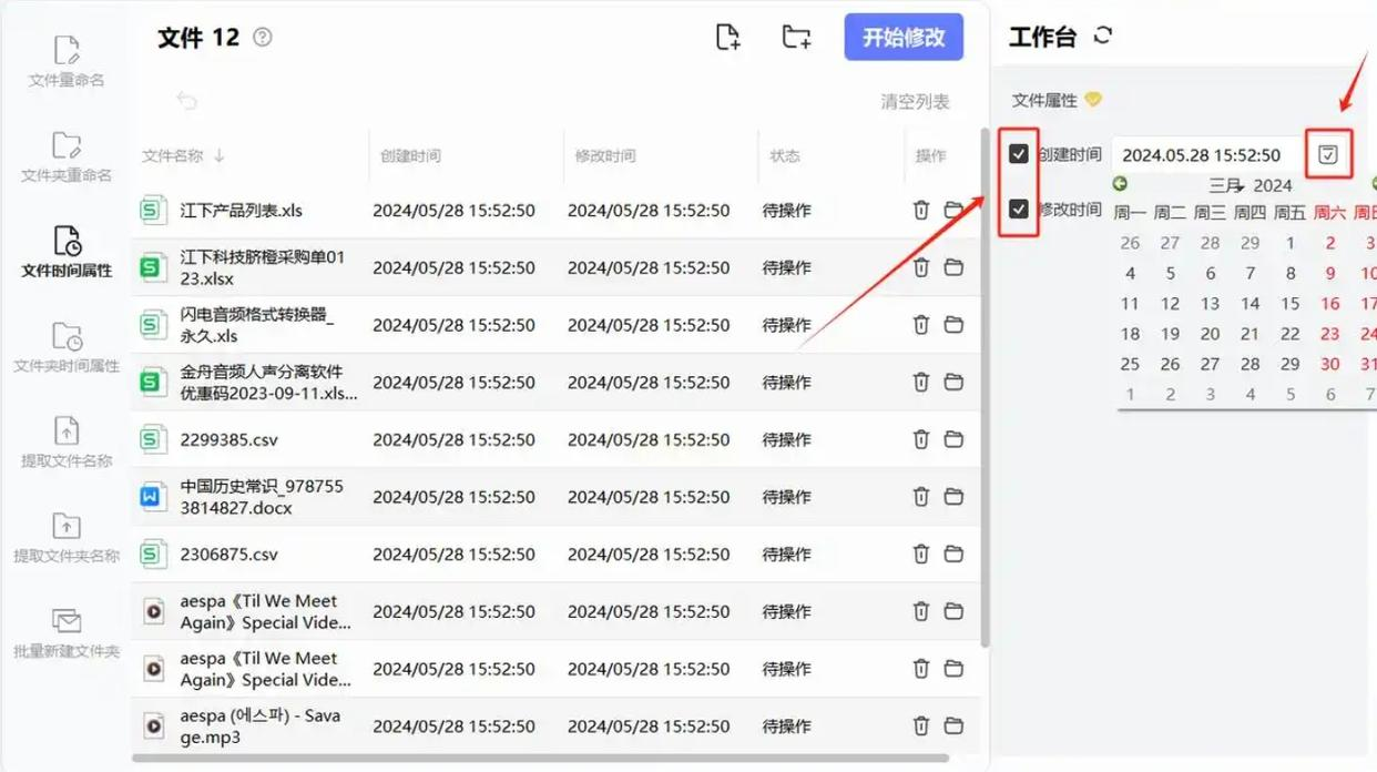 3. 选择要修改的时间类型:在界面中你会看到“创建时间”和“修改时间”两个选项,勾选你想要调的那一项或两项。
