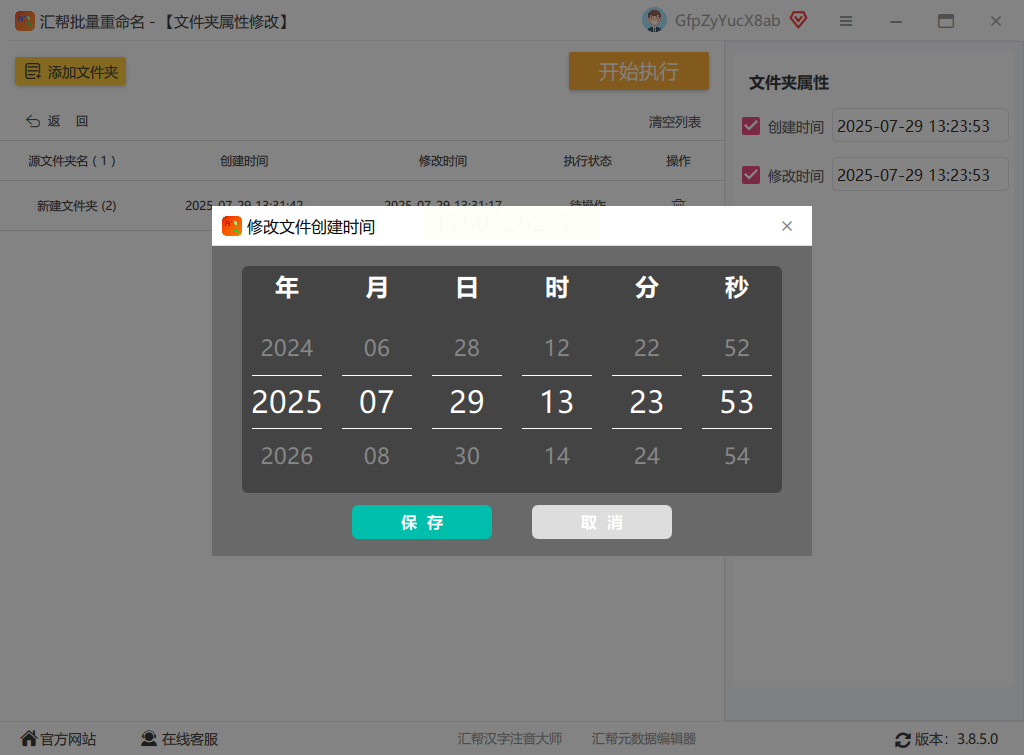 * 步骤四:时间设置妥当后,先点击“保存”按钮确认当前设置。最后,点击“开始执行”按钮。软件会开始处理,当界面提示操作完成时,就意味着所有选中文件夹的创建时间都已经被成功更新了。