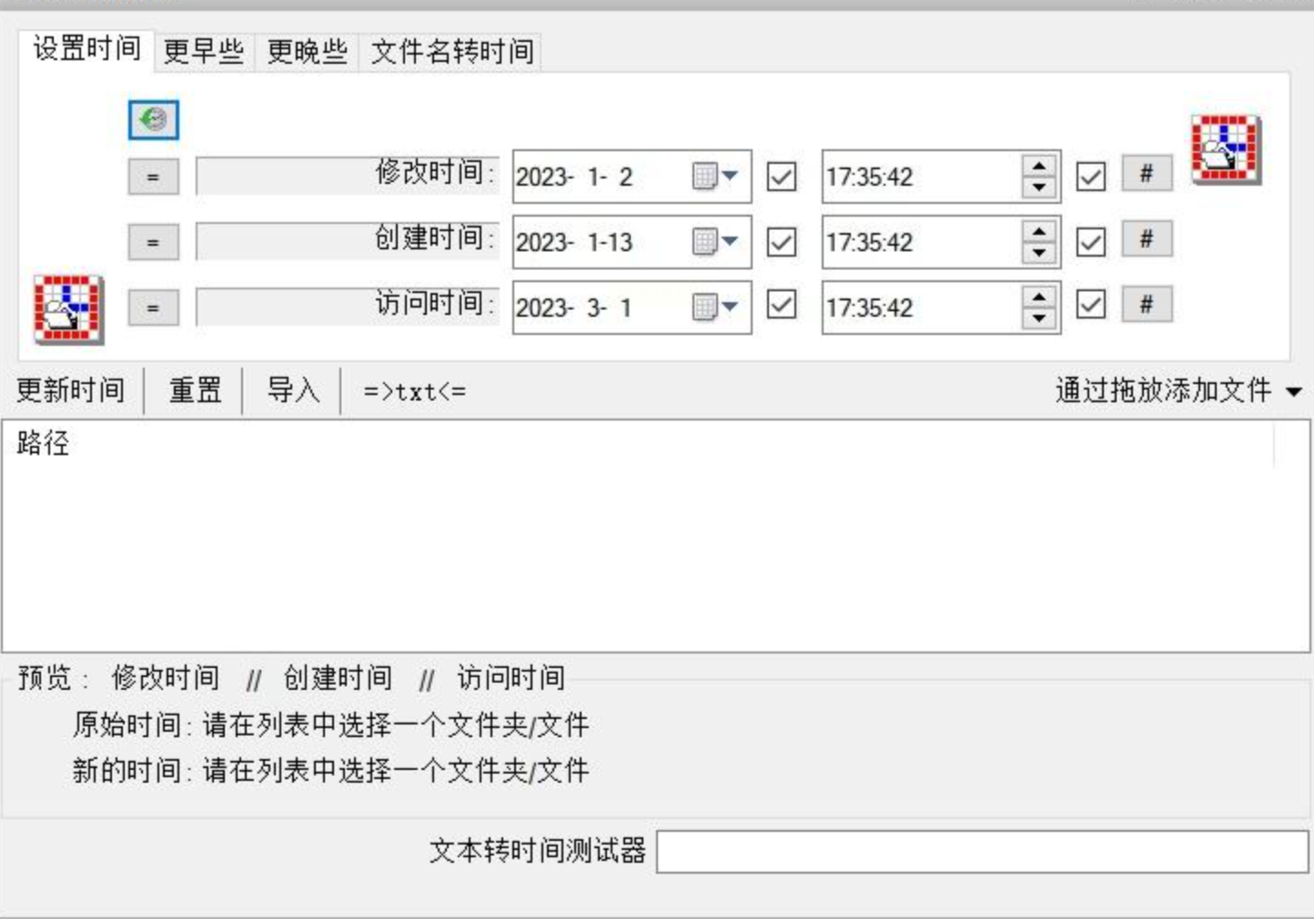1. 打开软件:界面上三个时间选项都能改,注意逻辑顺序:创建时间 < 修改时间 < 访问时间,别弄反了!