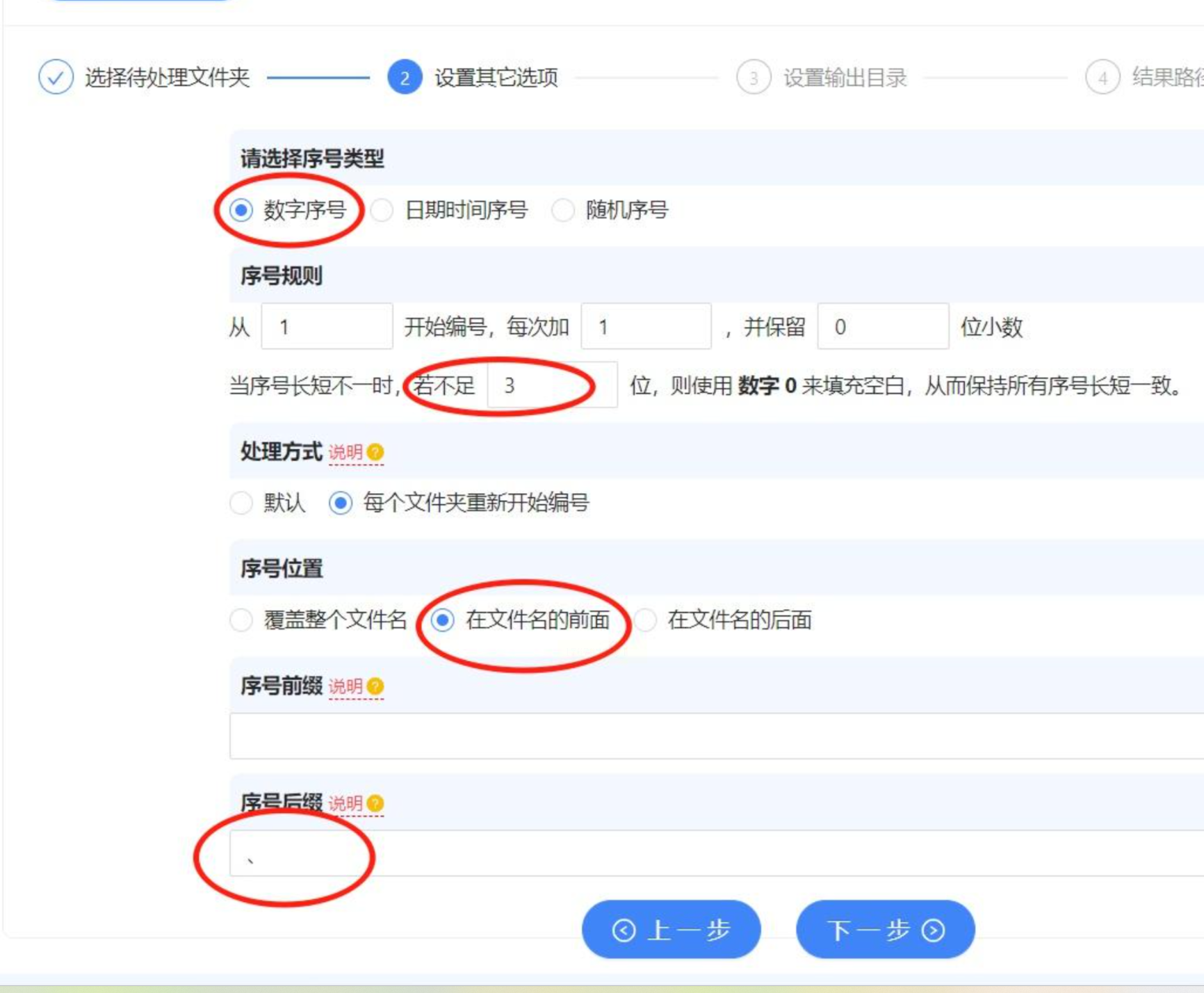 在右侧选项中选择“自定义”命名方式。如果你只需要纯数字编号,可以勾选“仅使用编号作为文件名”选项。接下来,设置编号的起始数字、位数(例如001、002)等格式。