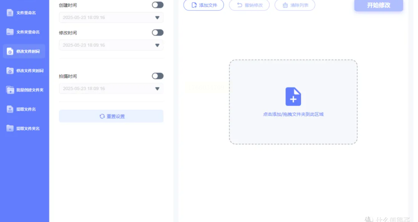 1. 打开软件,选左侧"修改文件时间"(界面是蓝色按钮,很好找)