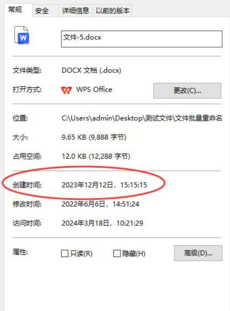 在右侧属性面板中,找到“创建时间”和“修改时间”选项。点击输入框右侧的时钟图标,弹出时间选择器: