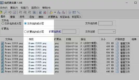 - 实时预览:勾选后,文件列表会立即显示转换后的效果(例如"FILE.TXT"变为"file.txt")