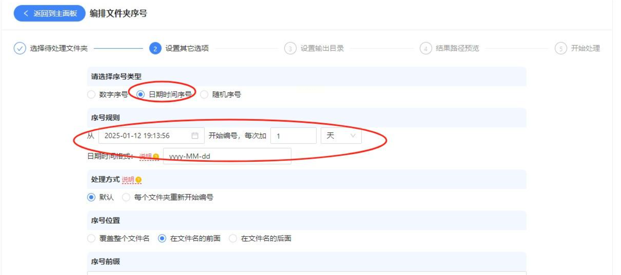 可以选择按日期或时间编号,并自定义格式。比如格式设为“yyyy-MM-dd”,编号就会像“2025-03-01_文件夹名”这样。