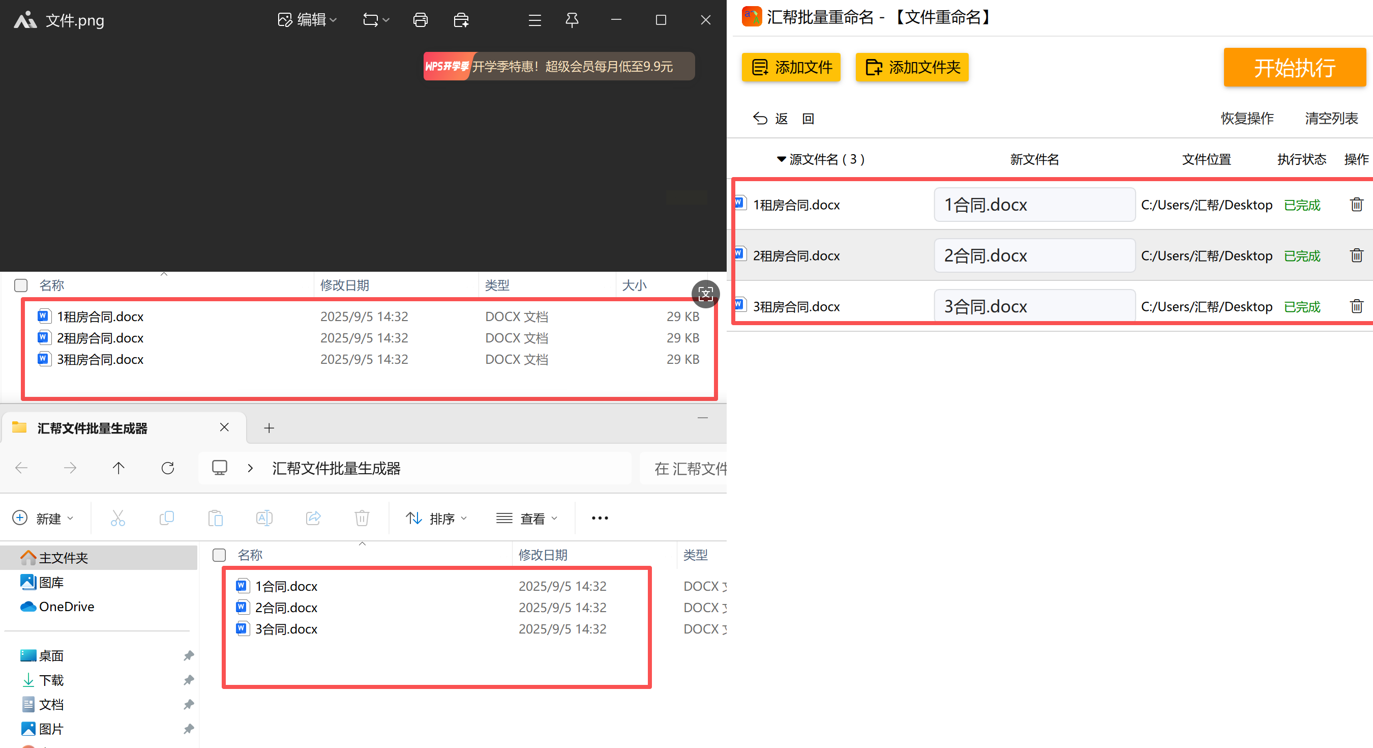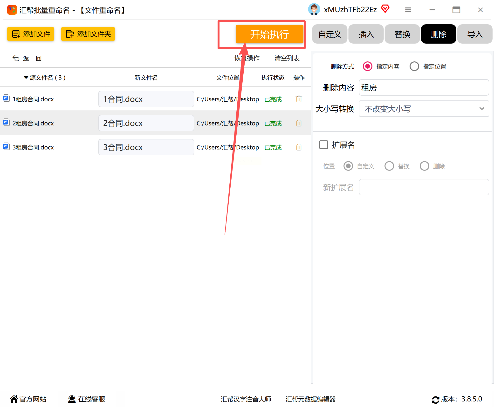 步骤四:确认设置无误后,点击“开始执行”或“重命名”按钮,软件便会自动运行。