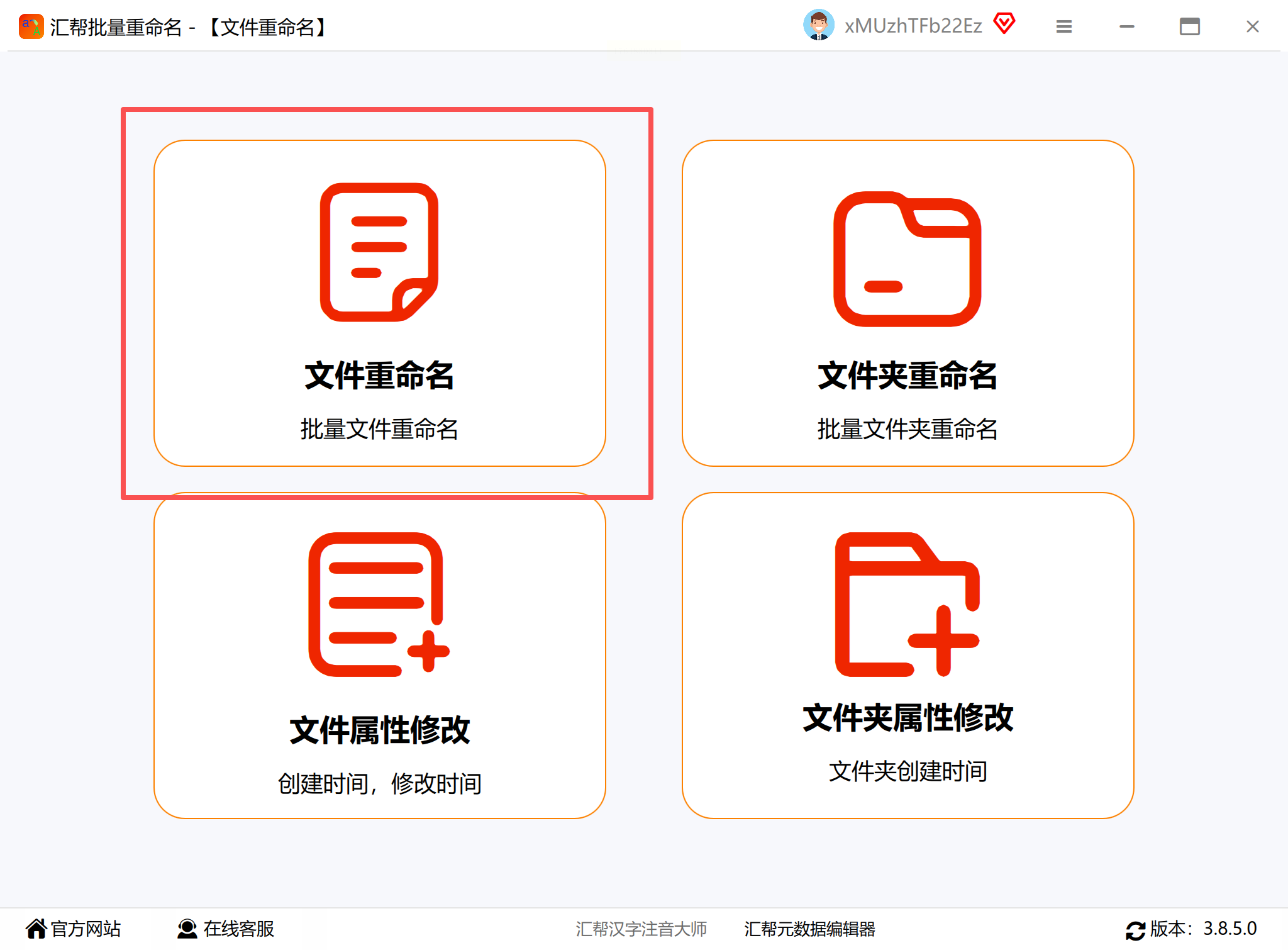 步骤一:打开软件后,在首页找到并选择“文件重命名”或类似功能模块。