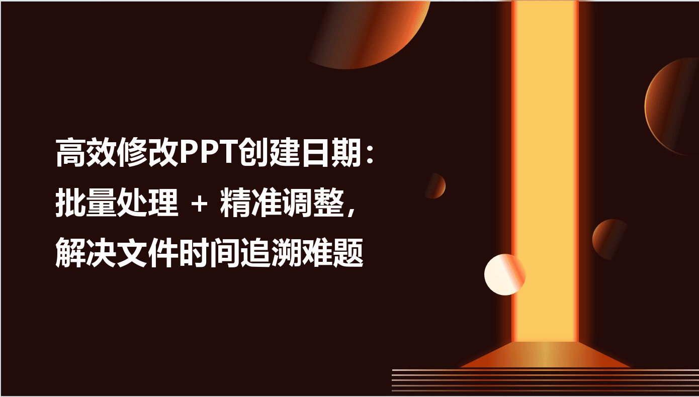 在商务演示与文件归档场景中,PPT的创建日期不仅是时间戳的简单记录,更可能影响文件的专业性与追溯性。无论是需要修正历史汇报材料的时间信息,还是规范项目文件的时间标注,掌握PPT创建日期的修改方法都至关重要。本文将系统介绍不同场景下的修改策略,帮助你高效解决文件时间管理难题,提升办公文件的规范性与易用性。