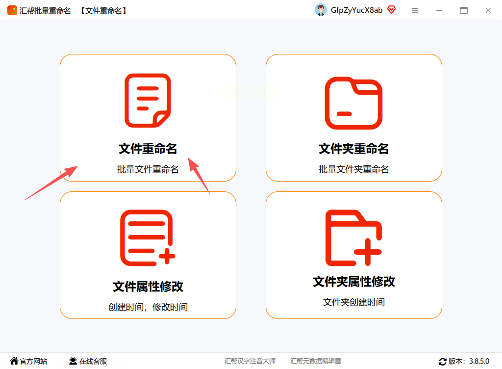 1. 先把汇帮批量重命名工具安装到电脑里(这里注意不是下载哦,是安装到本地),打开软件后找到“文件重命名”功能入口点进去