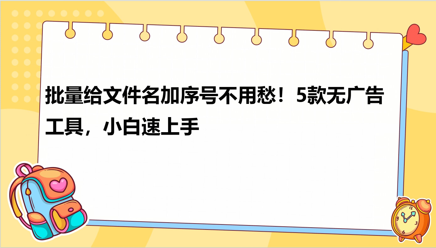 日常整理文件、照片时,手动给文件名加序号简直是折磨人的活儿!一个个改不仅费眼还容易出错,尤其文件多的时候,少个零或者漏个序号都可能导致文件混乱,批量给文件名加序号更是难上加难。试过不少工具要么广告弹窗烦死人,要么操作复杂得像学编程,这次给大家分享几个超好用的工具,不用懂代码,鼠标点几下就能搞定批量给文件名加序号,省时间还靠谱,新手也能秒上手!