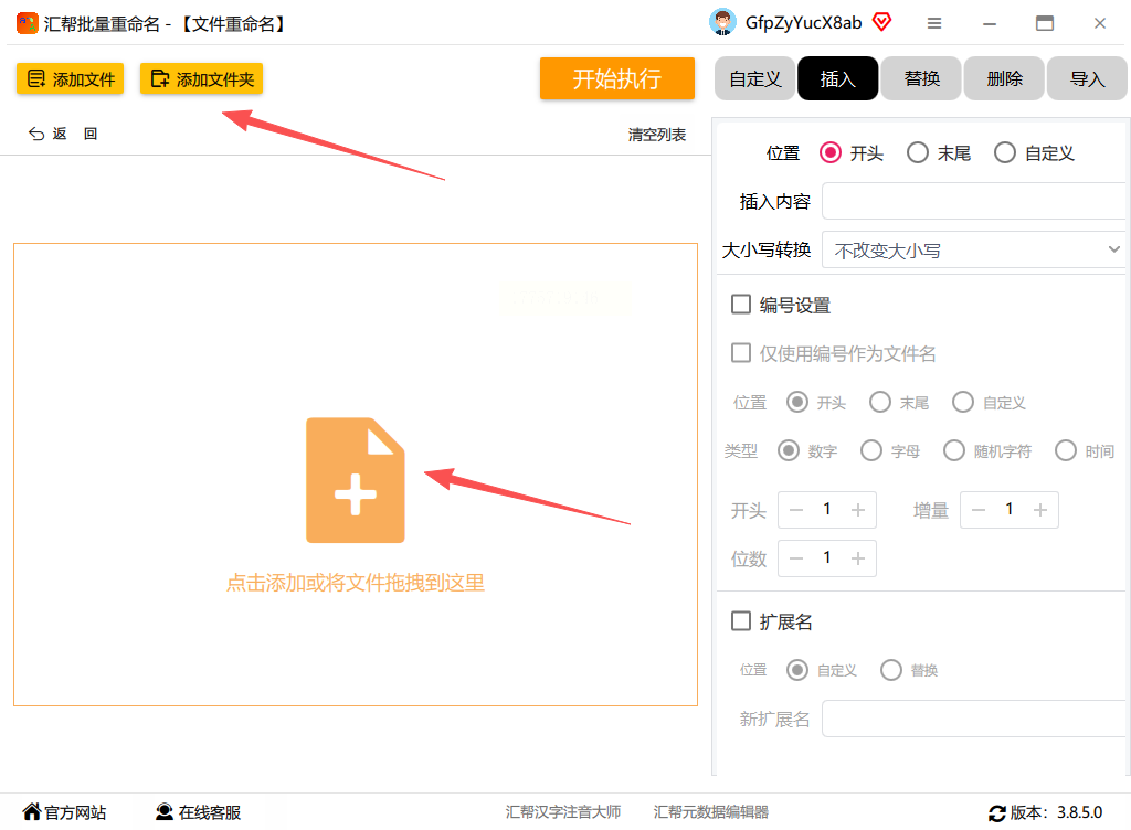 3. 右侧设置区域找到“插入”选项,位置选“开头”(如果想在文件名最前面加序号的话),然后勾选“编号设置”,左边就会自动生成序号,你能实时看到预览效果(比如第一个文件变成“1_原文件名”这样),轻松实现批量给文件名加序号