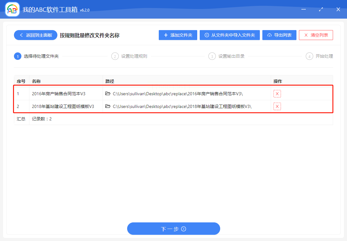步骤四:点击「开始处理」,软件会先扫描文件夹结构,生成预览列表,确认无误后执行重命名,完成后可一键导出处理日志。